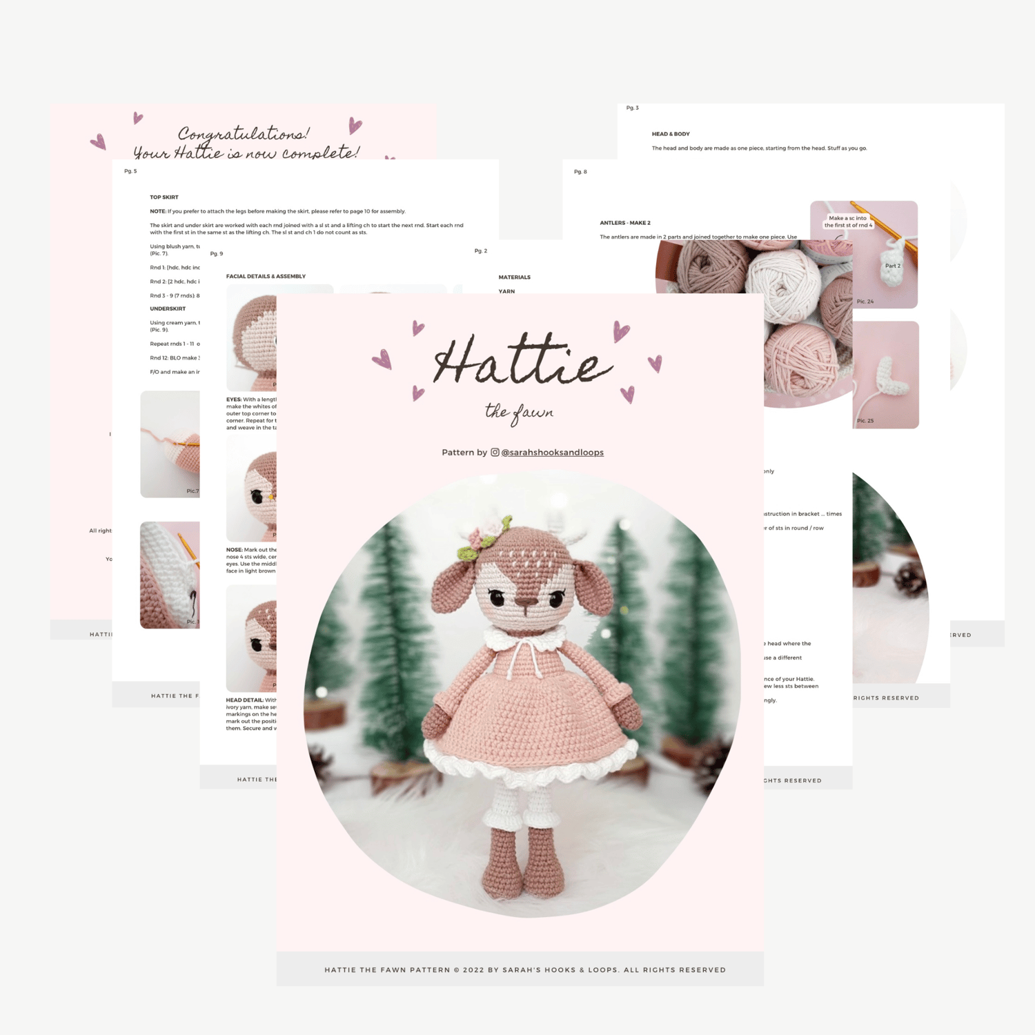 Hattie's amigurumi pattern comprises of 13 pages that are filled with detailed instructions and 49 step by step images for you to follow, making her an absolute pleasure to make.